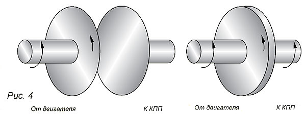 Однако востребованным это нововведение оставалось недолго. Практически сразу были выявлены его минусы: низкий КПД, высокая степень износа, ненадежность, особенно в плохую погоду, с одной стороны, и «несостоятельность» при работе с более мощными двигателями – с другой. Все это и подтолкнуло светлые умы тогдашнего автопрома к поиску наиболее оптимальной конструкции сцепления. И… получилось так, что в нынешних легковых автомобилях от самого первого трансмиссионного механизма с ременным приводом не осталось ничего. После многолетних поисков инженеры пришли к наиболее распространенному в наши дни однодисковому сухому сцеплению, которое, несмотря на свою весьма простую конструкцию, отличается высокой надежностью, плавностью включения и хорошо передает крутящий момент при высоких температурах, возникающих при трении фрикционных накладок и нажимного диска. Состоит сцепление из: